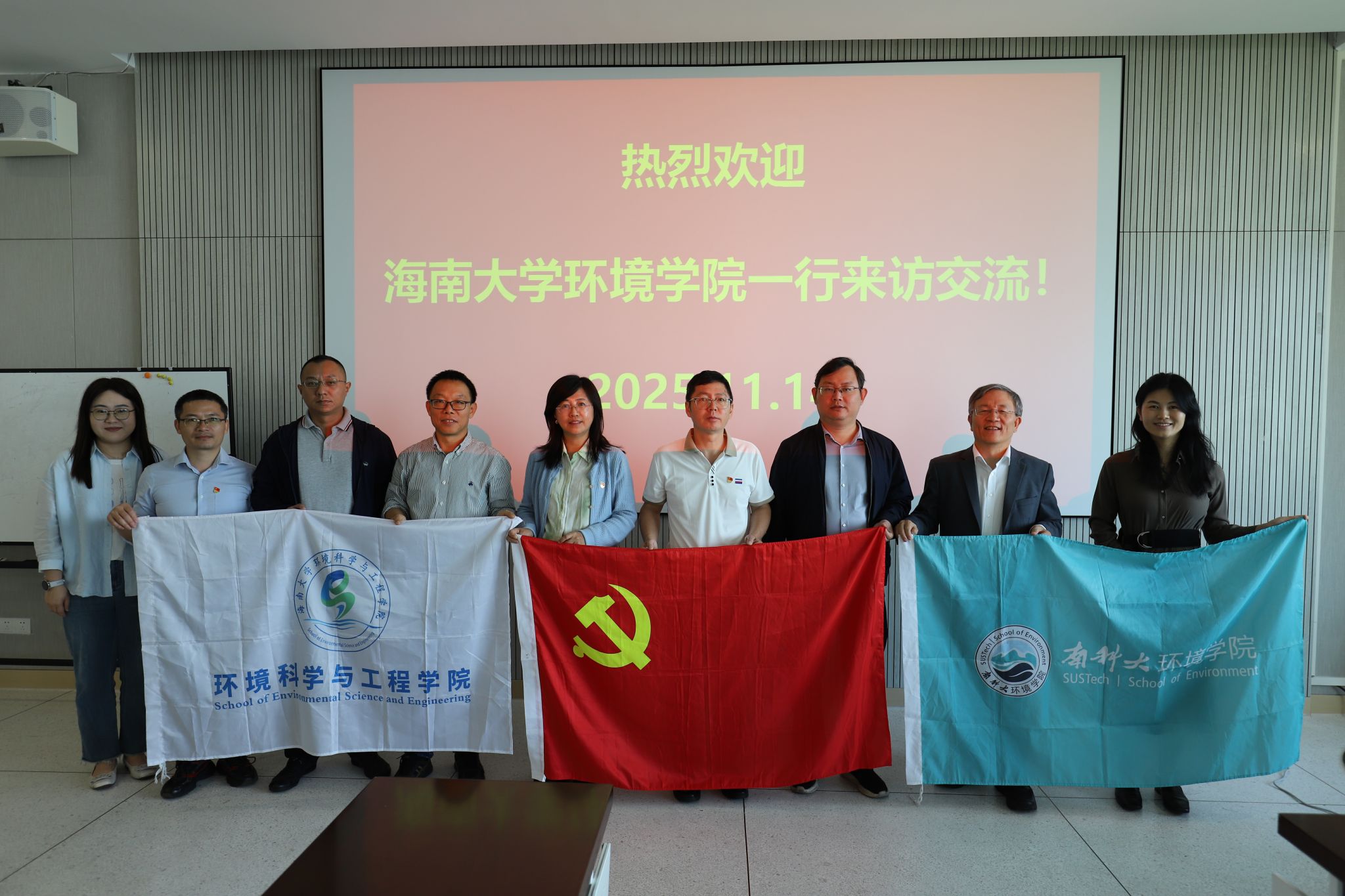 11月14日上午,我院党总支书记王旭、执行院长孙轶斐,副院长廖建军、朱治强,副教授李成,副研究员赵雪一行6人赴南方科技大学(简称"南科大")环境科学与工程学院,开展联合党建暨业务交流。南科大环境学院党委书记陈洪、院长郑焰,党委副书记王钟颍,纪委委员李海龙,统战委员唐圆圆,助理院长裘文慧参加活动。