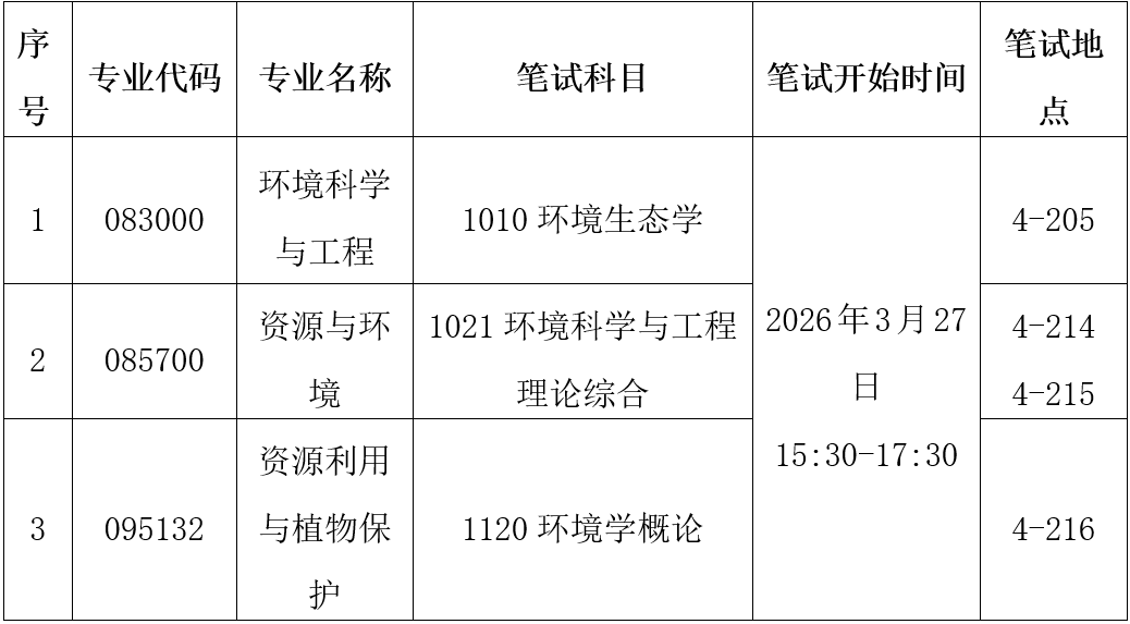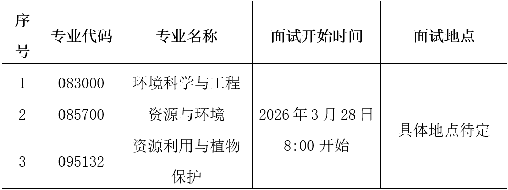 请考生根据报考专业分别加入QQ群:①环境科学与工程专业2026年硕士招生复试群(群号:1082531519);②资源与环境专业2026年硕士招生复试群(群号:1082525995);③资源利用与植物保护专业2026年硕士招生复试群(群号:1082557432)。加群验证消息:姓名-报考专业-考生编号,如“张三-环境科学与工程-×××。