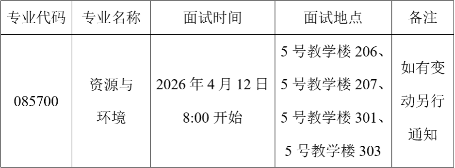 我院2026年硕士研究生招生调剂复试采取线下(现场)复试的方式,参加调剂复试考生需满足相应学科(类别)教育部公布的《2026年全国硕士研究生招生考试考生进入复试的初试成绩基本要求》(B类考生),且第一志愿专业与调入专业相同或相近,或初试科目与调入专业初试科目相同或相近,具体要求详见《海南大学环境科学与工程学院2026年硕士研究生招生调剂工作办法》。考生需通过调剂复试资格审查,调剂复试采取差额形式,按照调剂计划数的150%进入调剂复试,不足1人按1人记,若排名末位出现多名考生统考分数相同,则一并进入复试。